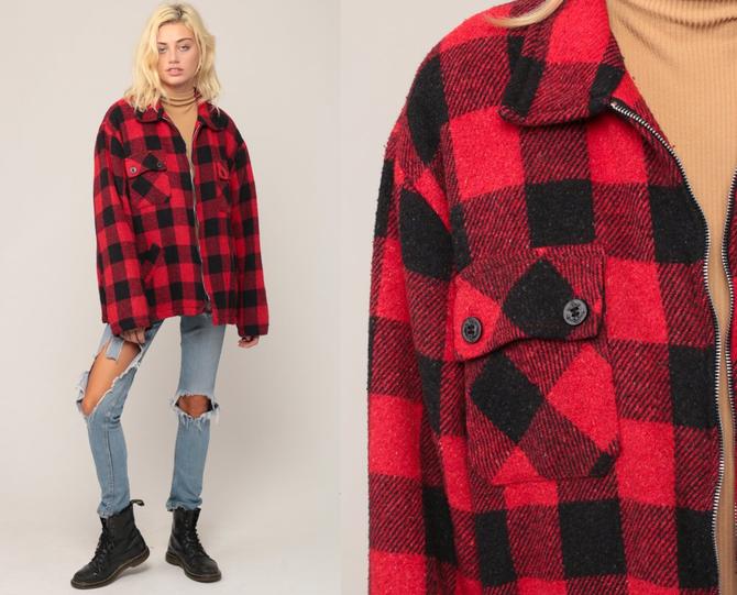 Flannel Jacket Wool Buffalo Plaid Jacket 80s Red Black Plaid 70s Lumberjack Zip Up Long From Shop Exile Of Tucson Az Attic